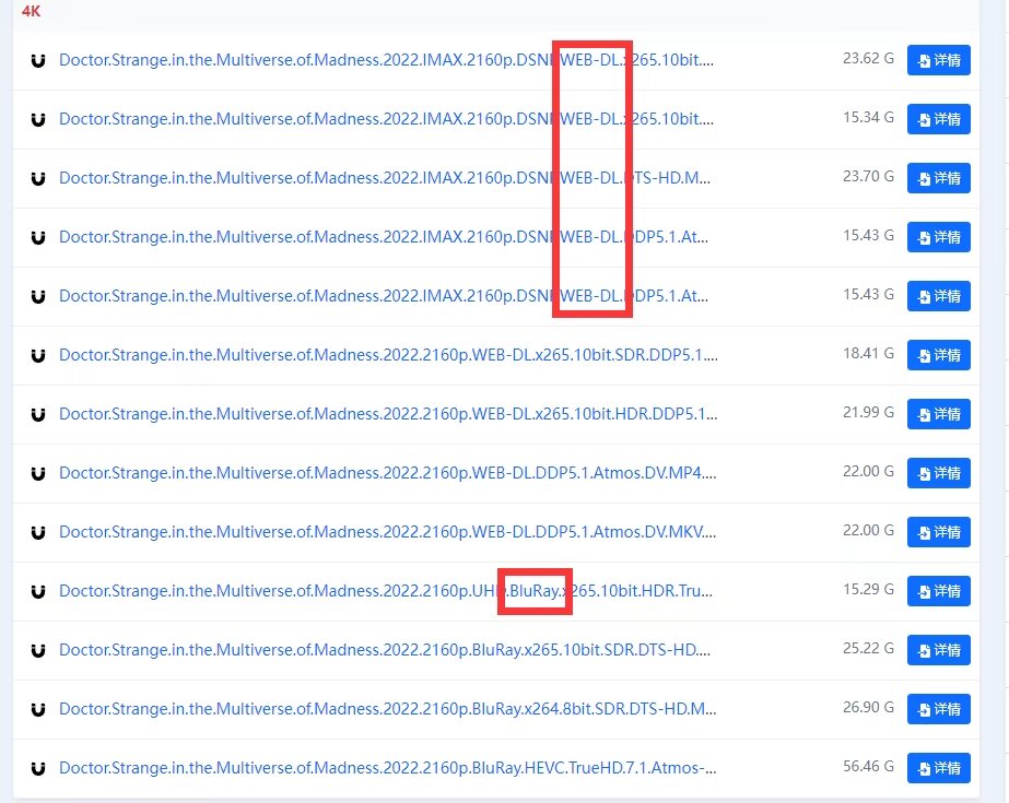 Bulray、BD:蓝光压制版,通过蓝光原盘提取后压制的文件,一般来说画质不差。